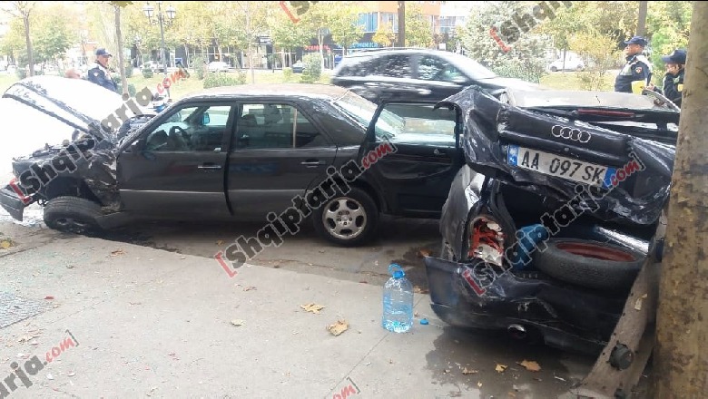 Aksident i frikshëm në Tiranë, 'Audi' përplaset me 'Benzin', një i plagosur rëndë (VIDEO)