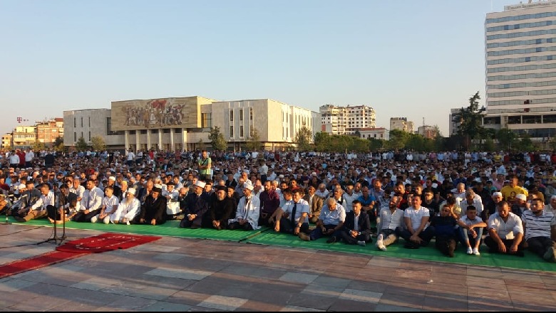 Kurban Bajrami, mijëra besimtarë myslimanë falin namazin tek sheshi Skënderbej