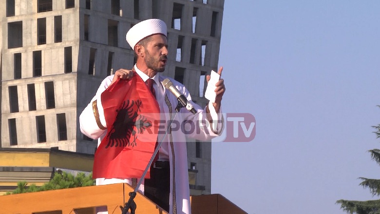 Myftiu i Tiranës me flamur në shesh: Gjithçka na duhet është dashuria (VIDEO)