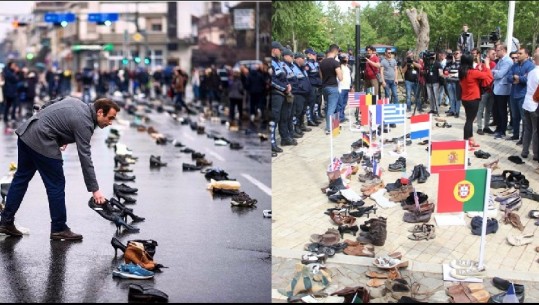 Protesta para Kuvendit/ Ja ku e kopjuan të rinjtë e opozitës simbolikën e këpucëve