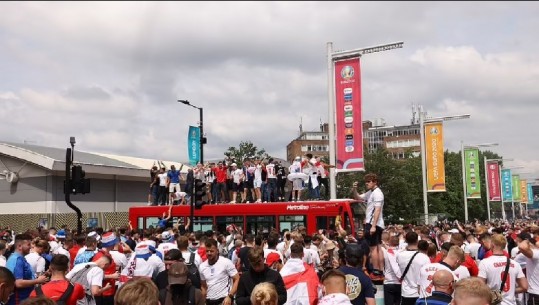 Atmosferë elektrizuese në Angli, pak para ndeshjes më të rëndësishme të kombëtares në 55 vite, tifozët dynden para stadiumit Wembley dhe festojnë si të 'çmendur'