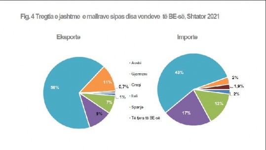 Të dhënat tregojnë se në Shtator 2021 eksportet e mallrave arritën vlerën 33 mld lekë, duke u rritur me 31,1 %, në krahasim me të njëjtën periudhë të një viti më parë dhe me 39,4 %, në krahasim me Gusht 2021. Dhe rritja e importet e mallrave nuk rrinë pas, ku arritën vlerën 69 mld lekë, duke u rritur