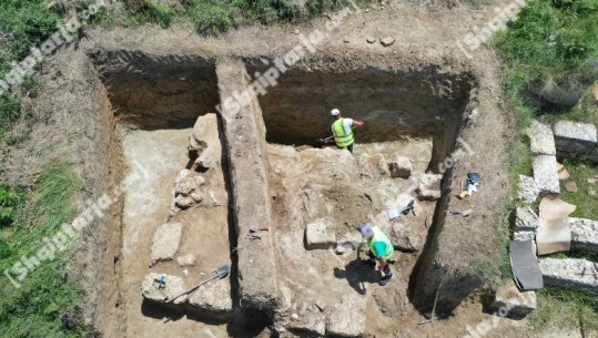 Gërmimi arkeologjik i varrit monumental, në Parkun Arkeologjik të Amantias.