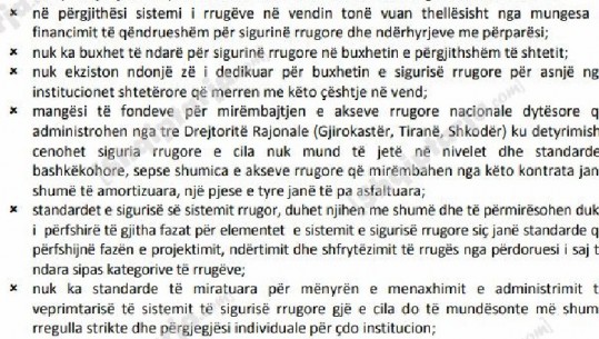 Kontrolli i Lartë i Shtetit raport për sigurinë rrugore, hyrje-dalje dhe kryqëzime jashtë kushteve teknike, nuk ndërhyhet në pikat e zeza, sinjalistikë e gabuar, ekspertët e sigurisë hiqen nga puna, drejtuesit e mjeteve përgjegjës për shpejtësinë jashtë normave, përdorimin e alkoolit dhe parakalimet e gabuaraMinistria