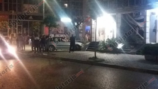 Aksident në Elbasan, makina me shpejtësi del nga rruga dhe përfundon në dyqan