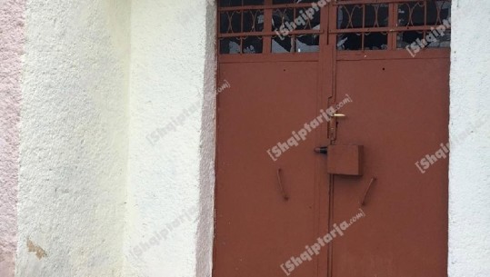 Thyhet xhami në derën e një farmacie në Elbasan në orët e para të mëngjesit