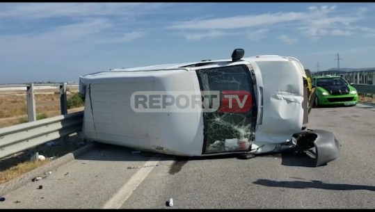 Vlorë/ Shoferi humb kontrollin, furgoni i mallrave kthehet përmbys! Trafik në autostradë