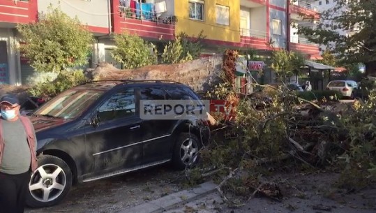 Dy rrapë shekullor janë rrëzuar përtokë në qytetin e Fierit. Si pasojë janë dëmtuar disa makina që kanë qenë të parkuara poshtë tyre. Sipas informacioneve, rruga nacionale Fier-Vlorë është bllokuar, ndërkohë që 3 makina që kanë qenë poshtë rrapit, janë d&