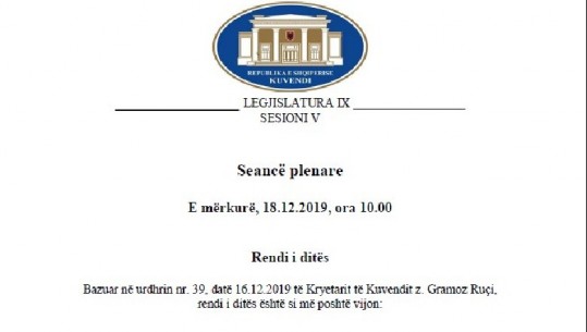 Plot 22 pika janë në rend dite dhe që pritet të diskutohen në seancën parlamentare të 18 dhjetorit, ku 13 prej tyre janë të karakterit financiar dhe ekonomik.Projektligji i buxhetit 2020, paketa fiskale, rivlerësimi i