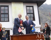 Mbledhja e përbashkët zhvillohet në qytetin ku 136 vjet më parë u mbajt Lidhja e Prizrenit. Firmoset Strategjia e bashkëpunimit mes dy vendeve. Rama: "Për këdo që ka shqetësime në lidhje me vijat kufitare dua të them se kufiri mes Shqipërisë e Kosovës është shumë i qartë e i patjetërsueshëm”. Thaçi: Epokë e re, marrëdhëniet tona. (Ne foto: Pamje nga mbledhja e dy qeverive)VIDEO/Shqipëri-Kosovë, Mujota për A1 Report: Bashkëpunim për portet Fjala e plotë e kryeministrit Rama në mbledhjen e përbashkët në Prizren Fjala e plotë e kryeministrit Thaçi në kompleksin e Lidhjes së Prizrenit