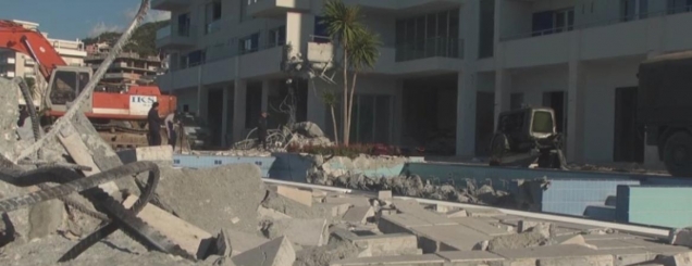 Shpërthimi i komanduar i 400 kg eksploziv shkaktoi shembjen e kompleskit "Jon" në zonën e Ujit të Ftohtë në Vlorë, në pronësi të pronësi të Xhuvi Sharxhit dhe Xhafer Isufit, vjehrrit të Lulzim Bashës. TV A1 Report me grupin e xhirimit është ndodhur në vendin e ngjarjes. (Ne foto: Kompleksi Jon) VIDEO/Kompleksi "Jon" shembet pjesërishtVIDEO/ FOTO/ Xhenio vendos eksplozivinTahiri: Prokuroria të hetojë, të dëshmojë edhe Berisha