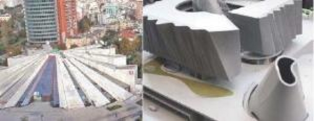 Nuk do të ketë godinë të re për Parlamentin e ri i cili ishte parashikuar të ndërtohej në vendin ku sot ngrihet Piramida, por ku është ndërtesa e Selisë së Kuvendit. (Ne foto: Piramida dhe projekti i Parlamentit te ri)