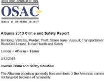 Amerikanët janë të shqetësuar për rritjen e kriminalitetit dhe sigurisë së shtetasve të tyre në Shqipëri. Në raportin e përvitshëm të byrosë diplomatike për siguri, OSAC krimi i organizuar mbetet një problem serioz dhe pse në tërësi situata e sigurisë dhe rendit është përmirësuar.