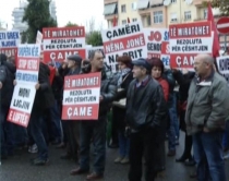Anëtarë të PDIU-së, protestuan sot para Kuvendit kundër zvarritjes së Rezolutës për Çamërinë. Shpëtim Idrizi iu drejtua pjesëmarrësve me thirrjen: "Ta nxjerrim Kalin e Trojës nga Kuvendi, aty ku s'guxojnë të thonë se ka një paqe të rrejshme Shqipëri-Greqi."(Foto: Protesta sot para Kuvendit)