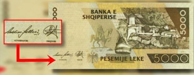 Nga data 9 korrik 2014, Banka e Shqipërisë hodhi në qarkullim kartëmonedhën me prerje 5000 Lekë me kurs ligjor, emetim i vitit 2013. Cudia: Karmonedha, nje sasi e te ciles u zhduk ne Linze pas dorezimit nga shtypshkronja u firmos nga kunati i Fullanit, ne burg per kete vjedhje, Dorian Collaku, i emeruar si drejtor i Emetimi. VIDEOEditorial/ Qeveria dhe përgjegjësia mbi Fullanin…'S'bie' Fullani, Këshilli i Bankës nuk e dorëzon guvernatorin