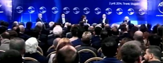 “Unë them që SHBA nuk mban anë, por ne jemi me integrimin e Shqipërisë në BE". Deklarata u bë nga zyrtari i lartë amerikan, Jonathan Moore në konferencë “Bashkëpunimi transatlantik për paqen dhe sigurinë në Ballkan: Një axhendë e Shqipërisë për integrimin në BE dhe NATO”. Në këtë konferencë folën edhe, Lulzim Basha, Pandeli Majko, Edita Tahiri, etj. (Në foto: Paneli i parë i diskutuesve)
