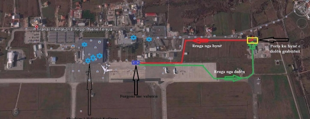 Në orës 14:23 të datës 30.06.2016, sipas orës së sistemit të kamerave të sigurisë së Aeroportit të Rinasit, një person i veshur me jelek me ngjyrë portokalli me fasha fosforeshente, kapërcen portën e ndodhur në skajin veri-perëndimor të pistës, portë e cila përdoret vetëm për hyrje-daljen e mjeteve që furnizojnë me karburant avionët.