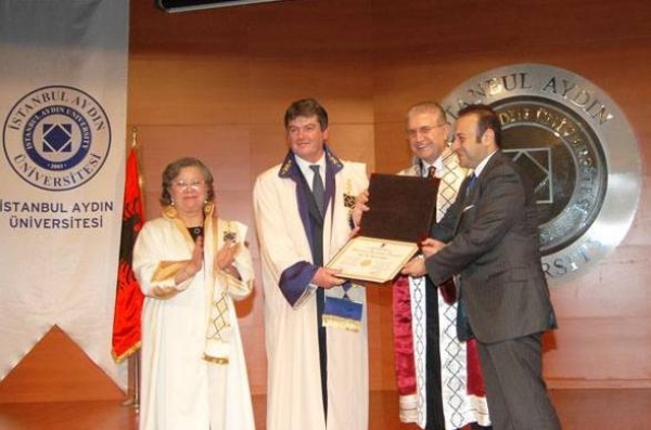 Bashkimi Europian është opsioni më i mirë për ribashkimin e shqiptarëve. Kështu është shprehur Presidenti i Republikës, Bamir Topi, gjatë vizitës së tij dje në Turqi. Gjatë vizitës së tij, Presidenti Topi u nderua me titullin “Dr. Honoris Causa” të Shkencave Politike (foto) nga kryetari i Bordit Drejtues të Universitetit “Ajdën”.