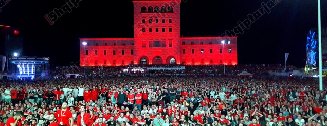 Mbas fërshëllimës së fundit nga arbitri të gjithë mbështetësit e Shqipërisë u çuan në këmbë duke brohoritur. Kjo është një ndeshje që zgjoi çdo zemër shqiptari dhe e bëri të ndihet krenar. E gjithë shqipëria është në festë dhe po sfidon shiun. VIDEO FOTO