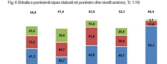Në tremujorin e parë 2016, shkalla e papunësisë ka rënë në 16,6 % duke shënuar një ulje prej 0,74 pikë përqindje nga tremujori i katërt i vitit 2015. E dhëna vjen përmes Anketës së Forcave të Punës të Institutit të Statistikave, sipas së cilës nga ana tjetër, punësimi shfaq një tendencë rritjeje si në terma vjetorë ashtu dhe në terma tremujorë. Në terma vjetorë punësimi u rrit me 5,2 %. Krahasuar me tremujorin e katërt të vitit 2015 punësimi u rrit me 2,1 %. VIDEO