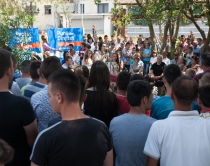 Lëvizja studentore "Për Universitetin" ka protestuar sot para ambienteve të kryeministrisë për të kundërshtuar reformën e arsimit të lartë. Sipas studentëve miratimi i reformës rrit tarifat e studimit për studentët. Ata kanë shpallur personan non grada ministren Nikolla dhe kryeministrin Rama deri në tërheqjen e reformës VIDEO FOTO ARKIVA - Lajme të tjera për ligjin e arsimit të lartë