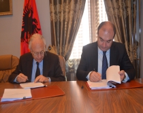 Ministri i Transportit dhe Infrastrukturës Z. Edmond Haxhinasto firmosi sot me kompaninë "JV RAILCON” kontratën për projektin e detajuar të linjës hekurudhore Durrës – Tiranë dhe vlerësimin financiar/ekonomik të të gjithë rrjetit hekurudhor në Shqipëri.