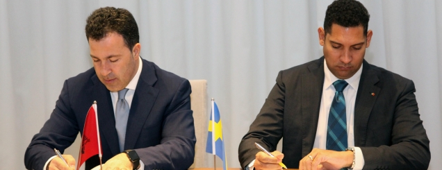 Zëvendëskryeministri Niko Peleshi dhe i ngarkuari me punë i Ambasadës Suedeze Johan Ndisi nënshkruan sot një marrëveshje bashkëpunimi për zhvillim, në mbështetje të reformave kryesore drejt zhvillimit ekonomik, forcimin të demokracisë dhe një mjedisi më të mirë, në harmoni me axhendën e integrimit të Shqipërisë në BE.