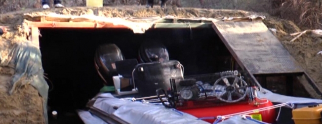 Zbulohet një tunel 25 metra i gjatë në zonën e hidrovorit në Vlorë që mendohet se përdorej nga trafikantët për të fshehur mjetet motorike për trafikun e lëndës narkotike drejt Italisë. Shoqëroehn edhe disa efektivë të Policisë së Kufirit (Në foto: Tuneli i fshehtë dhe gomonia që po nxirret nga tuneli) FOTO