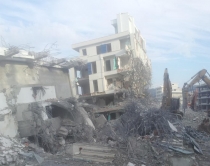 Kanë vazhduar gjatë gjithë natës dhe po vijojnë edhe herët në mëngjes punimet për prishjen përfundimtare të kompleksit "Jon" në Vlorë. (Në foto: Punimet në ish-kompleksin "Jon" sot në Vlorë). Rrezimi i kompleksit, gati projekti i shëtitores