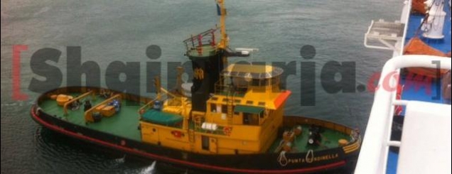 Trageti Marina i shoqërisë së udhëtimeve Adria Ferries që bën linjën Durrës - Bari është vonuar sërish për t’u ankoruar. Madje i është dashur ndihma e një rimorkiatori. Ankohen pasagjerët pasi trageti ka vështirësi edhe kur moti është me pak erë. (Foto: Rimorkiatori ndihmon sot tragetin të ankorohet)
