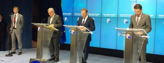 Pas bisedimeve maratonë prej me shume se 17 orësh, liderët e Eurozonës arrijnë unanimisht marrëveshje me Greqinë. Jucker: Greqia nuk del nga zona euro. Kreu i Eurogrupit: Tashme gjithcka i takon parlamentit grek. Fondi i garancise prej 50 miliarde euro ne Greqi jo Luksemburg; nga keto 25 miliarde per rikapitalizimin e bankave greke. Kundërshti brenda partisë së TsiprasStoltenberg: Marrëveshja greke e rëndësishme për sigurinë në NATOPDF/ Pakti i Eurogrup me Greqinë Cilat parlamente të BE do votojnë programin e ndihmës për Greqinë?