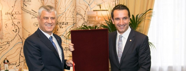 Kryetari i Bashkisë së Tiranës, Erion Veliaj priti sot në një takim zyrtar Presidentin e Republikës së Kosovës, Hashim Thaçi, i cili shoqërohej nga Ministri i Bujqësisë, Memli Krasniqi dhe Ministri i Infrastrukturës, Lutfi Zharku.