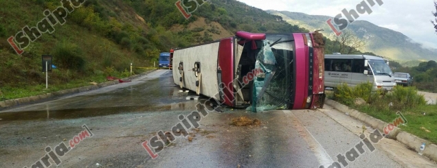 Një autobus me 41 pasagjerë i linjës Athinë- Tiranë ka dalë nga rruga dhe është përmbysur në aksin Gjirokastër- Tepelenë te 'Uji i Ftohtë' në vendin e quajtur 'Shkalla e Zezë'. Pas aksidentit 31 persona janë dërguar në spital për ndihmë mjekësore, mes tyre edhe një fëmijë, ndërsa 10 nuk kanë pësuar lëndime. Nga 31 personat e plagosur që u paraqitën në spital, sipas mjekut vetëm 15 janë shtruar, pasi 16 të tjerë kanë dalë, ndërsa të gjithë janë jashtë rrezikut për jetën. VIDEO FOTOTë plagosurit jashtë rrezikut për jetën