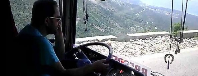 Në këtë video amatore mund të dallohet qartazi pakujdesia e shoferit të autobuzit, i cili ndërkohë që është duke kaluar një kthesë në një nga akset rrugore më të vështira siç është Llogaraja, vijon të komunikojë në telefonin e tij duke rrezikuar jetën e pasagjerëve dhe gjithashtu të tijën.