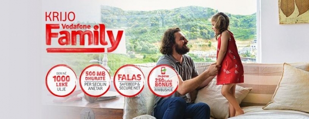 Vodafone Albania vjen pranë klientëve me një tjetër shërbim të ri. Vodafone Family, është shërbimi më i ri për klientët Vodafone Club, i cili sjell avantazhe dhe oferta speciale duke filluar me zbritje në çmimin e paketave, bonus në MB si dhe shërbimin Secure Net dhe SafeBeep falas për të gjithë anëtarët e Vodafone Family.