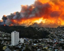 Dy persona kanë humbur jetën ndërsa 500 shtëpi janë shkatërruar nga një zjarr masiv që ka rënë në pyll në qytetin e porual Valaparaiso, në Kili. (Në foto pamje nga qyteti Valaparaiso ku ka rënë zjarri) FOTO