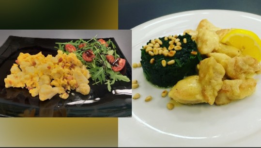 Të gatuajmë me Zonjën Vjollca/ Pulë me salcë limoni dhe Vezë me lulelakër e proshutë