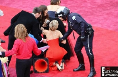 Duket se incidentet në eventet më të rëndësishme janë bërë ta pashmangshme për aktoren Jennifer Lawrence. Ashtu siç ndodhi vitin e shkruar gjatë ndarjes së çmimeve “Oscar” kur ajo u ngjit në skenë për të marë çmimin e aktores më të mirë, edhe mbrëmjen e