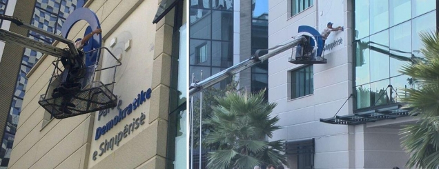 Lideri i ri PD-së, njëherësh edhe kryetari i Bashkisë së Tiranës, Lulzim Basha, në mënyrë antiligjore ka vënë në dispozicion punëtorët dhe mjetet e bashkisë, për të hequr simbolet e fundit nga ish-godina historike e PD-së. Kamera e "A1 Report" ka fokusuar dje në mesditë momentin e heqjes së tyre.