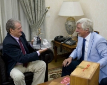 Kryeministri në ikje, Sali Berisha, ka publikuar sot me krenari dhe kënaqësi, dhuratat që ai ka marrë nga skulptori holandez Jaap van't Veer, "admirues dhe mik i madh i Shqipërisë." (Në foto: Kryeministri Berisha duke prezantuar dhuratën) Berisha pret artistin holandez që jeton në Alpet shqiptare