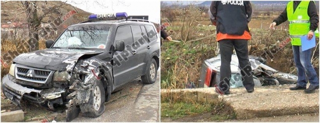 KORÇË- Dy nga automjetet e eskortës së kryeministrit Edi Rama janë përfshirë në një aksident rrugor në hyrje të qytetit të Korçës, teksa shoqëronin kreun e qeverisë. Makinat e aksidentuara janë "Mitsubishi" dhe "Toyota" me targa të Ministrisë së Brendshme. Makina "Toyota" ku udhëtonin tre gardistë, pasi është goditur nga një "Golf" ka dalë nga rruga duke përfunduar në kanal. Të lënduar kanë mbetur 3 punonjësit e Gardës. (Lajmi në përditësim...) VIDEO FOTO