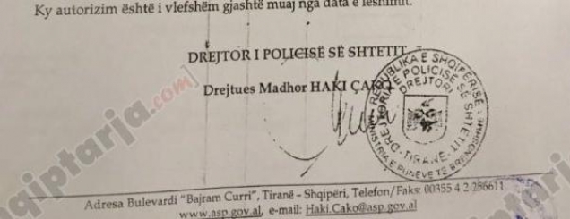 Pa kaluar 48 orë nga operacioni i Policisë “Vjeshtë 2017” në Durrës, ku u prangosën dy persona të rrezikshëm Marjel Fierza dhe Genti Nderjaku, Report TV ka mundur të sigurojë një dokument që duket se zbeh këtë aksion. Report TV ka siguruar faksimilen ku policia i ka dhënë leje për të mbajtur armë Genti Nderjakut. VIDEO FOTO