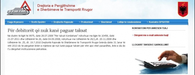 Pak orë pasi në media u publikua lista e zyrtarëve debitorë ndaj shtetit për mos pagimin e taksës vjetore për regjistrimin e automjeteve të tyre personale. Drejtoria e Transportit rrugor fshin nga faqja e saj online listën me emrat e debitorëve, për ta rikthyer sërish pas 24 orëve. Në listë Nishani, Topalli, 4 ministra e 45 deputetëSondazh: A duhet te sanksionohen politikisht zyrtaret qe nuk paguajne taksa