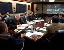 Presidenti i Shteteve të Bashkuara Barak Obama, i cili sot shpalli gjendjen e një katastrofe të jashtëzakonshme në shtetin e Nju Jork-ut, pas kalimit tnë këtë vend të uraganit “Sandy”, shfaqet në këtë fotolajm në Dhomën e Emergjencave të Shtëpisë së Bardhë.
