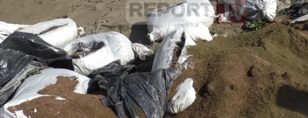 VLORE - Një sasi e konsiderueshme droge, prej rreth 1 ton, është zbuluar në Novoselë të Vlorës. Kamera e Report Tv ka shkuar në vendin ku ndodhen 600 kg drogë, të cilat janë hedhur në një gropë nga trafikantët. Droga është hedhur në një gropë dhe është braktisur nga trafikantët. Sasia e drogës është e konsiderueshme, ndërsa policia nuk ka ende dijeni për të. Report Tv sjell pamjet ekskluzive të lëndës narkotike të braktisur. VIDEO FOTO