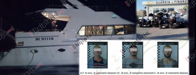 Një jaht luksoz me katër tonë drogë është kapur nga Guardia di Financia, në lokalitetin Vieste afër Fogias, ku veç drogës dhe Jahtit të sekuestruar, policia ka arritur të arrestojë dhe tre shtetas shqiptarë. Njëri me profesion peshkatar në Durrës, ndërsa dy personat e tjerë janë nga zona e Dibrës, pa ndonjë profesion të caktuar. Nga të dhënat e siguruara nga “Shqiptarja.com”, peshkatari nga Durrësi i arrestuar në Itali quhet Flamur Mema. VIDEO FOTO