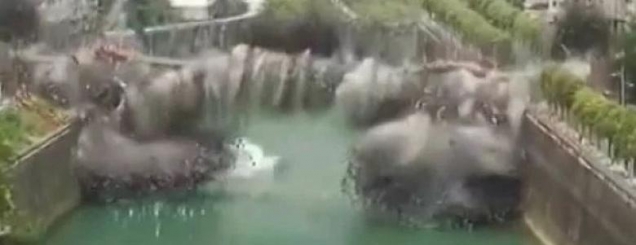 Një video interesante është filmuar në Kinë, ku një urë 40 vjeçare është shembur, kur autoritet e këtij vendi i mbushën mbi tre mijë vrima të vogla me 1.5 ton eksploziv.Inxhinierët arritën ta rrëzojnë urën në vetëm një sekond, ndërsa për shkak të sigurisë, 10 mijë banorë të asaj zone janë evakuuar për disa orë, derisa është vendosur eksplozivi dhe është shembur ura.