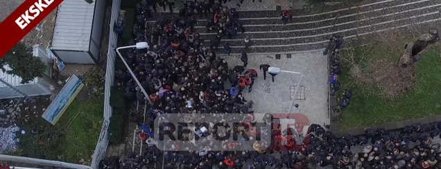 Report Tv sjell pamjet me dron të momentit kur protestues të shumtë përplasen me policinë, duke tentuar të çajnë kordonin e uniformave blu dhe të hyjnë në sallën e Kuvendit, aty ku mazhoranca do të zgjedhë Kryeprokurorin e ri të Përkohshëm. VIDEO