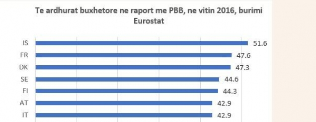 Me gjithë përparimin në raport me vetën Shqipëria u rendit e dyta pas Rumanisë për nivelin më të ulët në Europë të mbledhjes së taksave në raport me PBB në vitin 2016 sipas Institutit Europian të Statistikave (EUROSTAT).