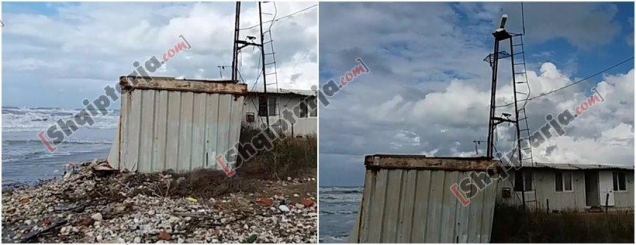 Radari i Policisë së Shtetit në Hoxharë të Fierit është dëmtuar nga dallgët e detit. Report TV mëson se prej më shumë se 10 ditësh radari është drejt rënies në det, ndërkohë që dallgët godasin dhomën e pajisjeve. VIDEO
